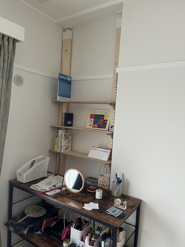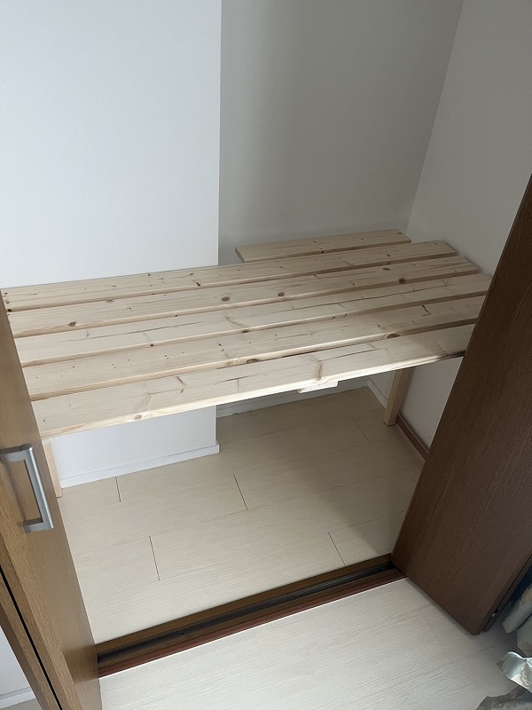 賃貸マンションの棚作り 2025年5月9日 W-worldその他 賃貸で壁に穴が開けれないときは突っ張り棒。結構見た目もいいし、材料も少なめなので置き型の棚よりいいかもしれないですね! クローゼットですがすのこみたいにして二段にしました。