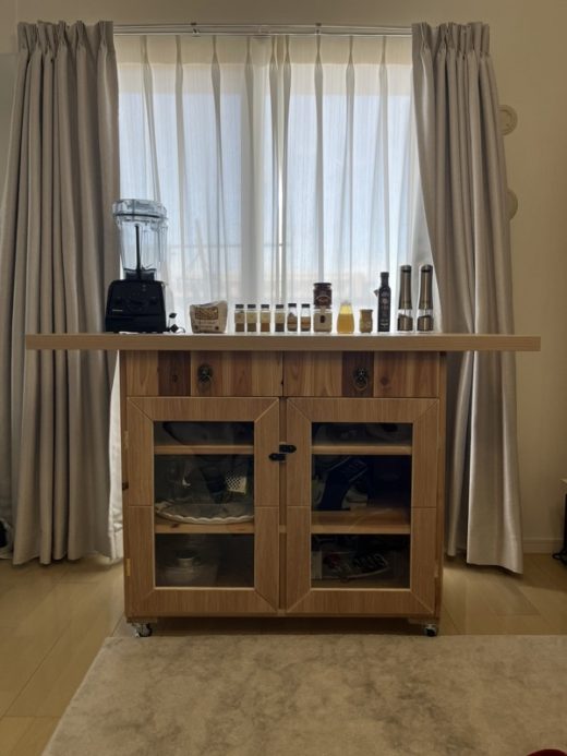 前に作った食器棚こんな感じです。ここで調理もするみたいです、脚をやっぱりキャスタ […]